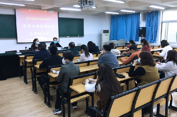 3月26日,附属中学召开2020年春季开学准备工作与疫情防控工作专题培训会。领导班子成员、年级组长、高三、初三全体教师参加会议,副校长王毅主持会议。