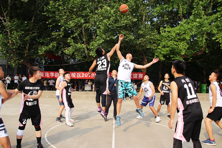 6月25日,由资源环境与历史文化学院和职业技术学院组织的渭城秦都两校区2019届毕业生篮球联谊赛在秦都校区篮球场举行。