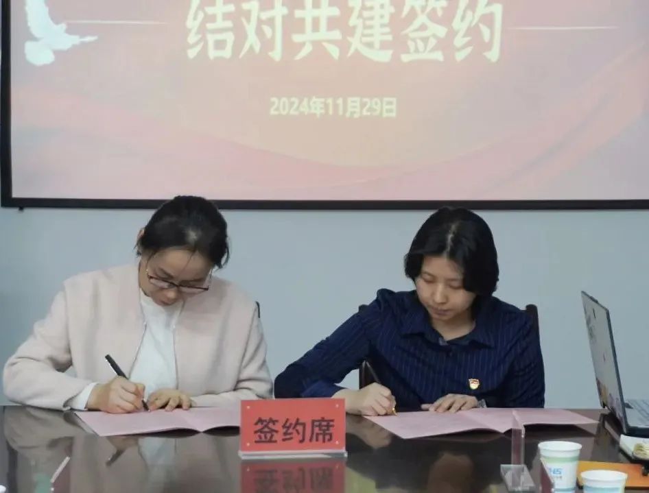 在签约仪式上,双方党支部书记分别介绍了各自支部的人员构成、工作特色以及在党建工作中的探索与实践,并共同签订了《党支部共建协议书》。