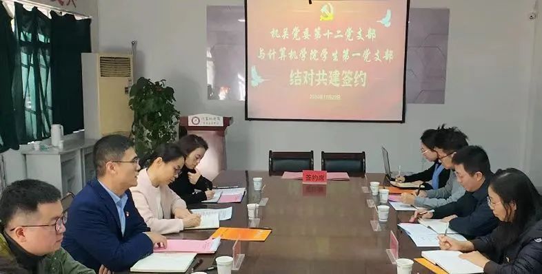 为深入贯彻落实党的基层组织建设要求,创新党建工作模式,凝聚党建合力,11月29日下午,机关第十二党支部与计算机学院学生第一党支部开展结对共建启动仪式暨主题党日活动。机关第十二党支部相关人员及计算机学院学生第一支部全体师生党员参加了仪式。