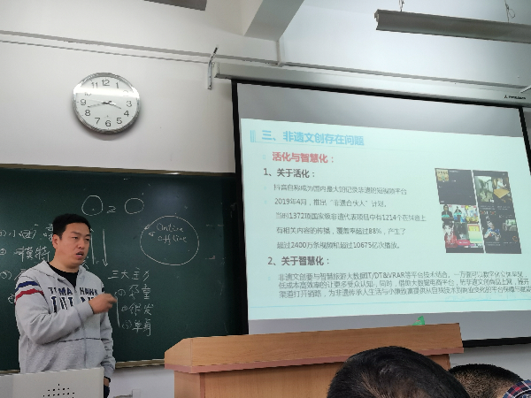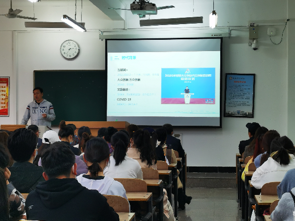 张会长从当今世界共同面临的问题---新冠肺炎引入正题,从时代背景、旅游行业存在的问题、跨界与创新、非遗文创怎么活起来五个方面谈了自己的看法。张会长认为,旅游产业虽然暂时受到冲击,但是仍然会朝着更好的方向发展。其次,他以案例的形式分析了文旅资源的传承与创新模式。最后,张会长指出如今旅游行业急需高素质人才,并对我院旅游管理专业人才培养表达了美好的祝愿。
