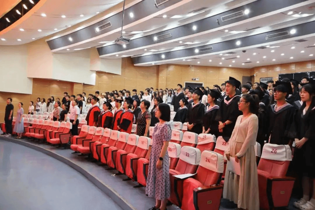 授予学位后,教师代表杨扬代表学院全体教师,向毕业生致以诚挚的祝贺和祝福,并提出三个“保持”寄语毕业生:一要保持好奇,永远对知识、对未知充满渴望;二要保持坚韧,面对困难不退缩,面对挑战勇往直前;三要保持温度,热爱生活,关心他人。