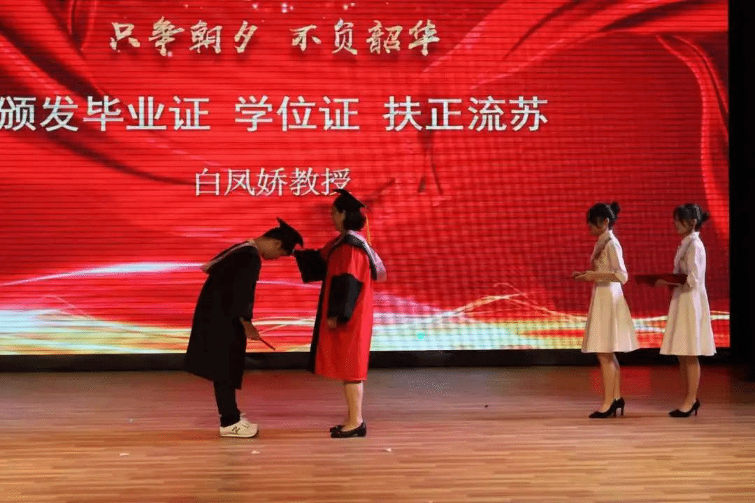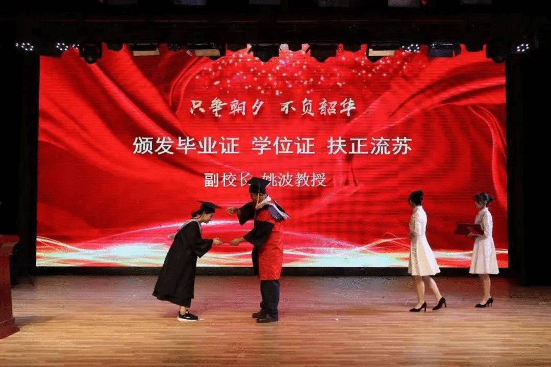 姚波对毕业生表达了殷切期望,希望大家在进入社会时能 “苍龙入海”,自由发挥个人才华;在事业发展时能“鹰击长空”,树立雄心壮志;在攻坚克难时能“狮子奋迅”,拥有强大力量和无畏决心。最后,他叮嘱大家要“居于微小、胸怀广大”,于自己本职岗位上为国家、为社会作出自己应有贡献。