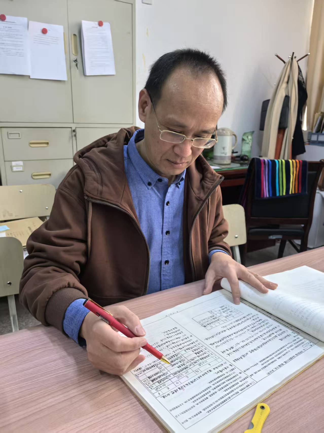 资料室里,他专注地核对试卷上的每一项信息,从学生的姓名、学号,到课程名称、考试时间,任何一个细微之处都不错过。他查看批改痕迹是否规范,每一道题的得分、扣分都要有清晰明确的标注,评语也要精准到位,确保整个批改流程严谨公正。遇到批改模糊不清的地方,他立刻拿起电话,不厌其烦地向授课教师核实,及时将问题反馈给任课老师,并附上详细的改进建议,帮助年轻教师们快速成长。