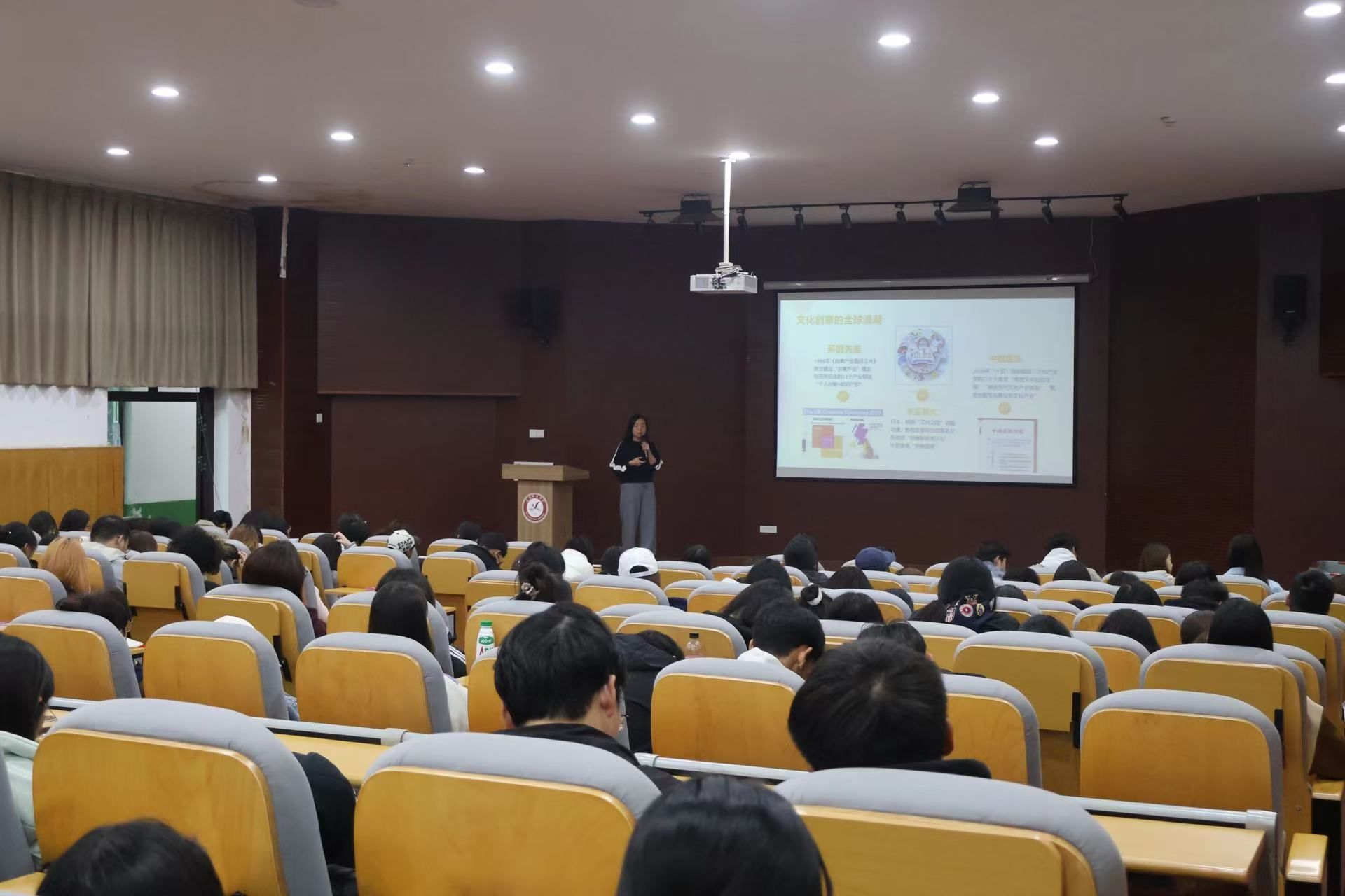 10月23日,我院“咸师经管·铎声讲堂”第二期在汇文楼4楼报告厅举办。本期特邀文旅系系主任李淼副教授担任主讲,她以“当城市更新遇上文化创意—用文创之光点亮美好生活”为题做了专场讲座。讲座由学院党委副书记赵聪主持。