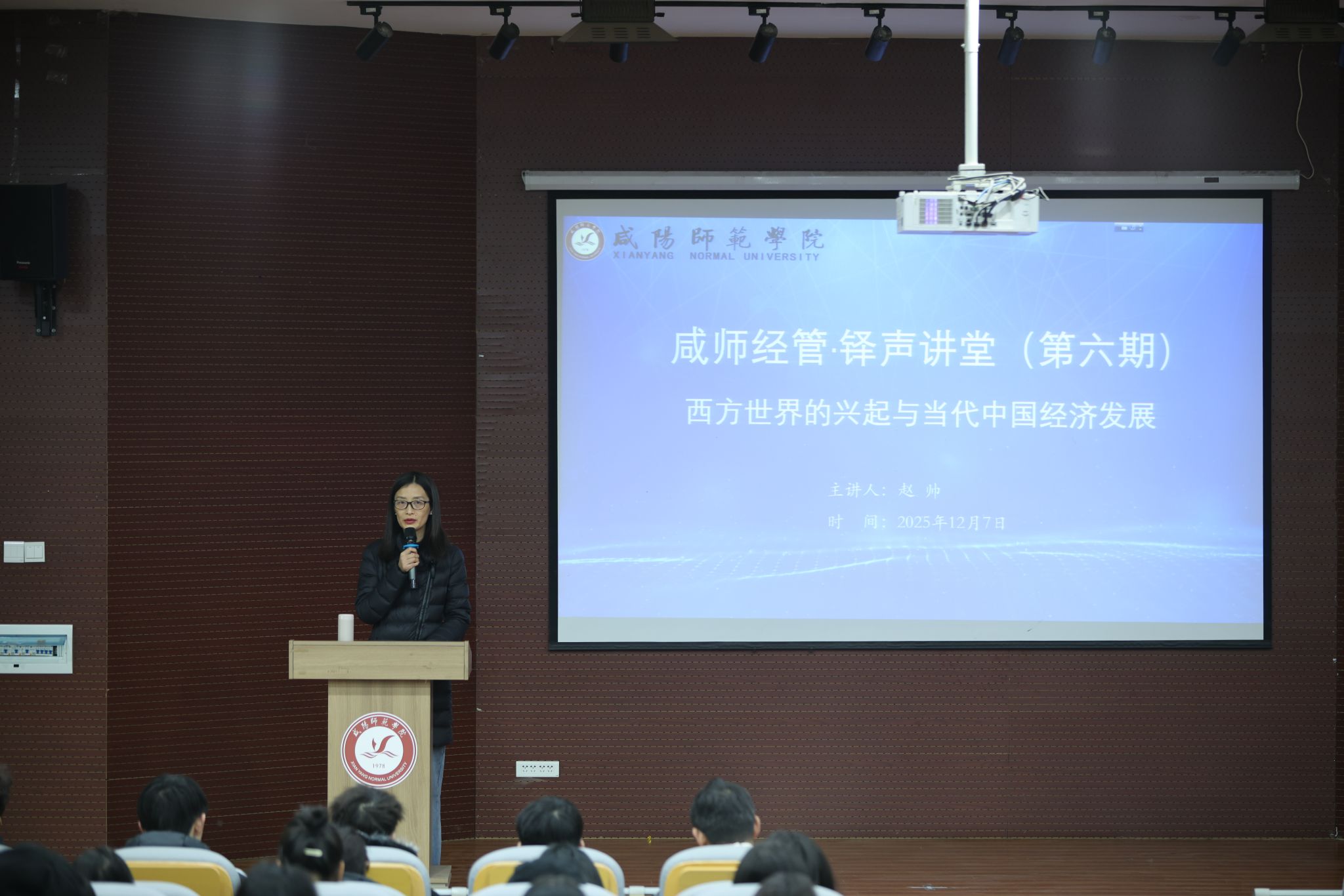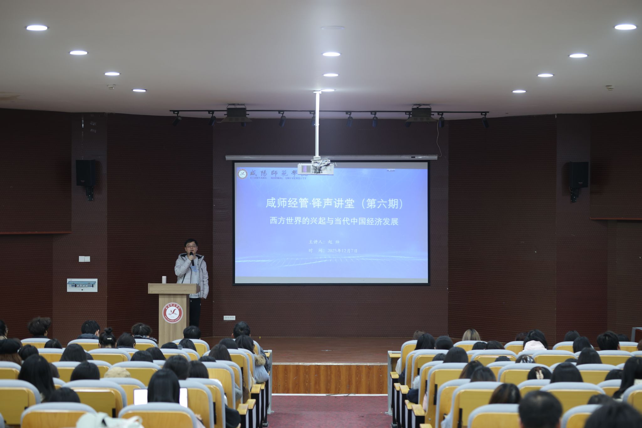 12月8日,我院“咸师经管·铎声讲堂”第六期在汇文楼四楼报告厅顺利举办。本期讲堂由学院青年教师赵帅担任主讲,他以“西方世界的兴起与当代中国经济发展”主题,为现场师生带来一场贯通历史与现实、连接东西方发展经验的思想对话。讲座由学院党委副书记赵聪主持。