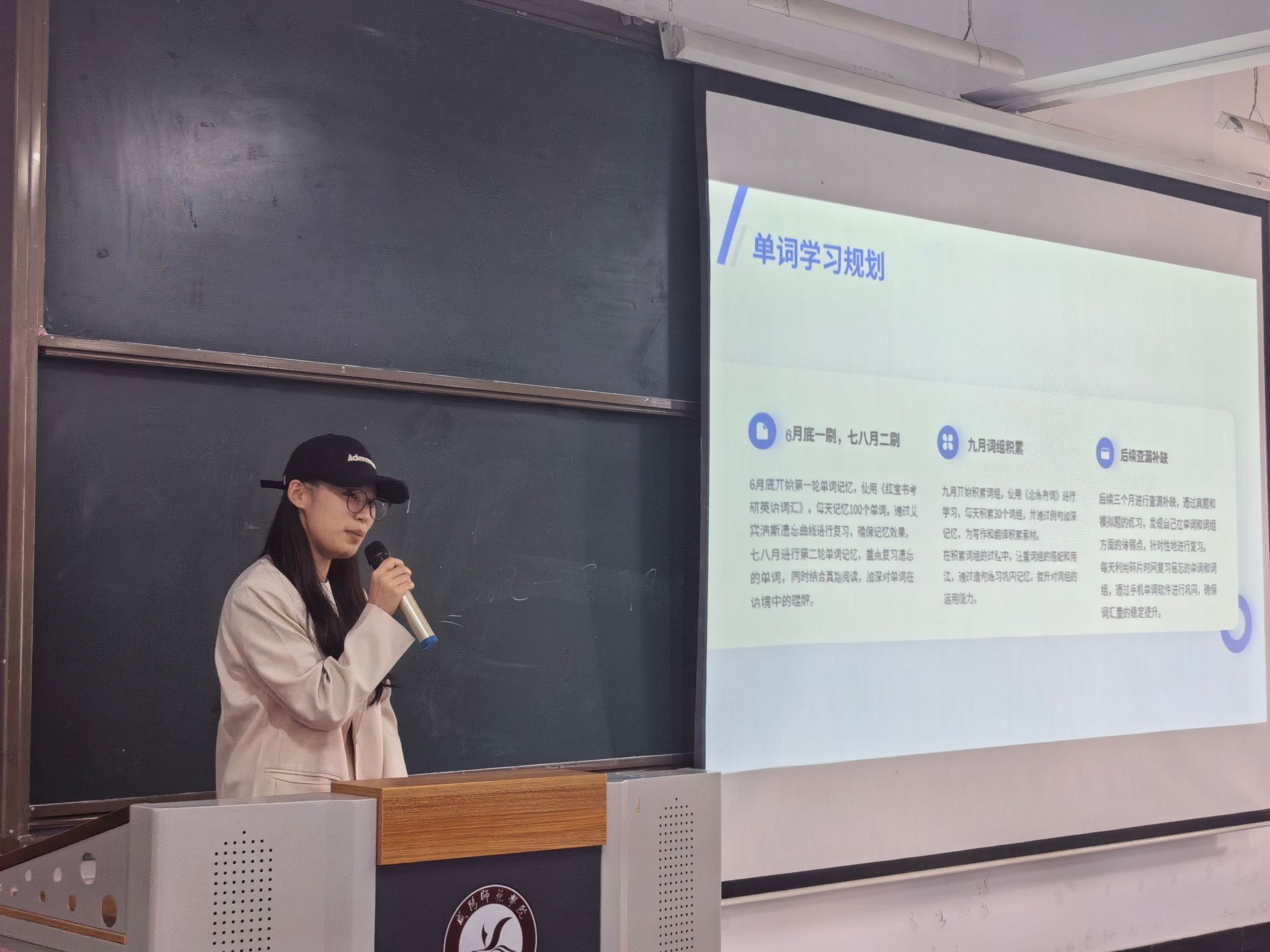 党委副书记赵聪介绍了学院2025届考研录取情况。她鼓励同学们:一要积极借鉴学姐们的成功经验,明晰方向目标;二要树立信心,合理规划,找准自身节奏,全力以赴复习;三要科学调整心态,脚踏实地,为实现自己的目标而坚持到底。