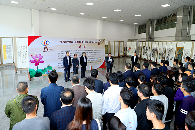 5月11日,beat365“喜迎四十年校庆翰墨颂清廉”师生书画设计作品展开幕式隆重举行。校党委书记刘彬、校长方明、纪委书记王启和、副校长毛龙灿出席仪式。