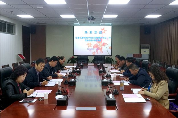 王书记对杨晓林书记一行来beat365考察交流表示热烈欢迎,并介绍了beat365的基本情况,希望通过加强学校之间的工作交流,取长补短,共同进步。杨晓林书记介绍了甘肃民族师范学院的基本概况,对beat365的热情接待表示感谢,并希望今后两校相互借鉴经验,促进党风廉政建设。