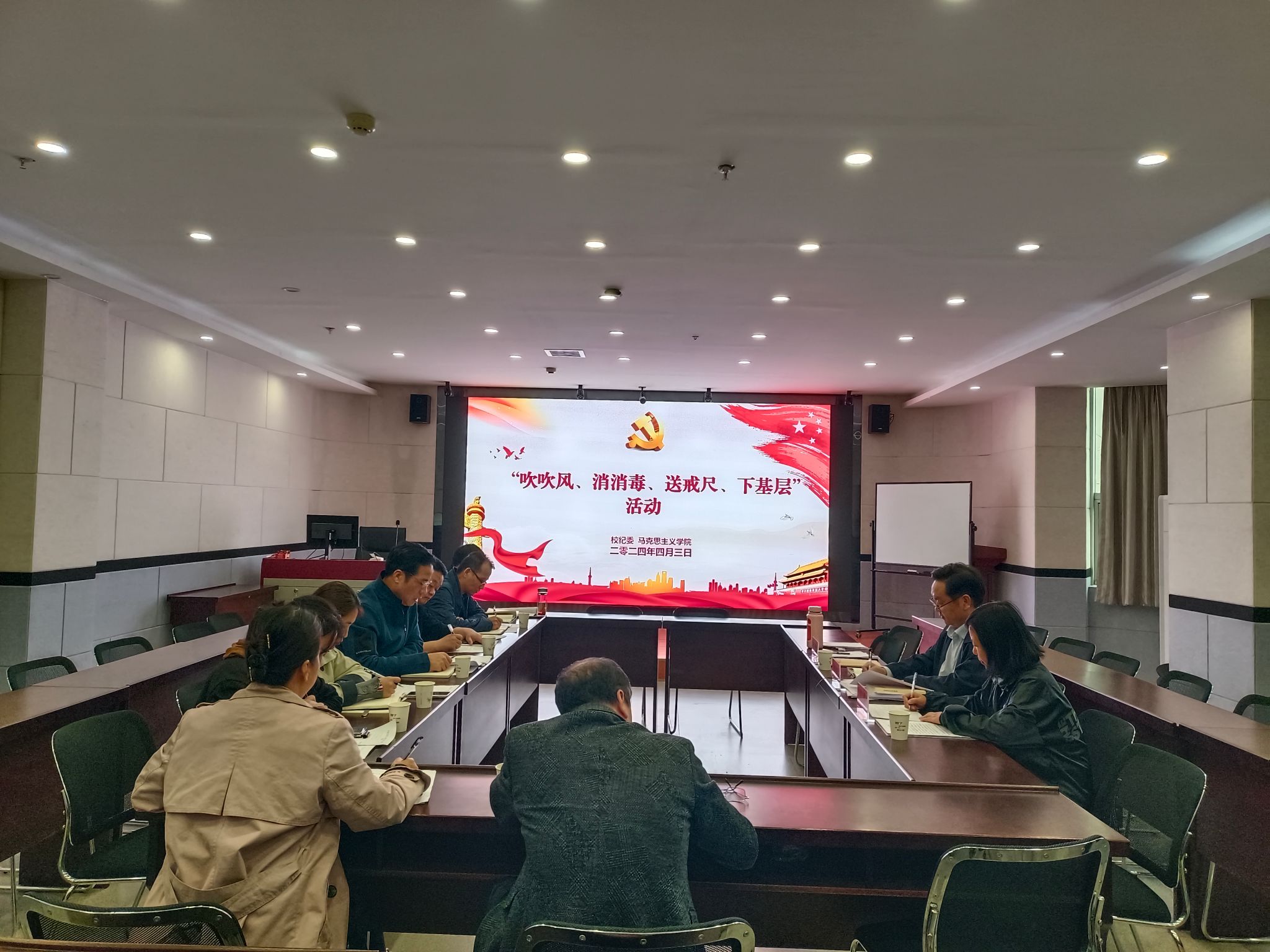 马克思主义学院党委理论中心组成员参加了学习活动。本次活动也是校纪委“吹吹风、消消毒、送戒尺、下基层”工作的一部分。