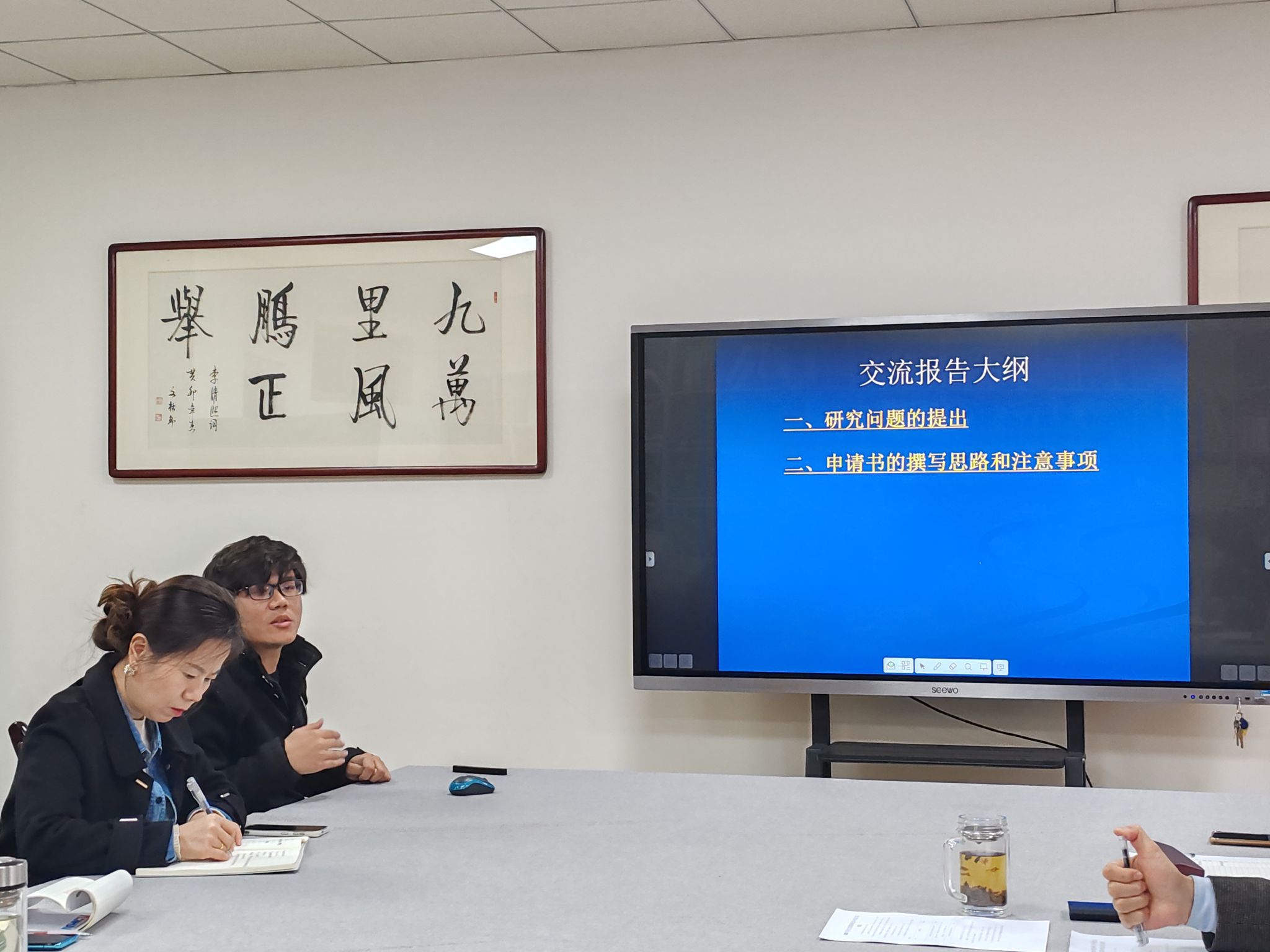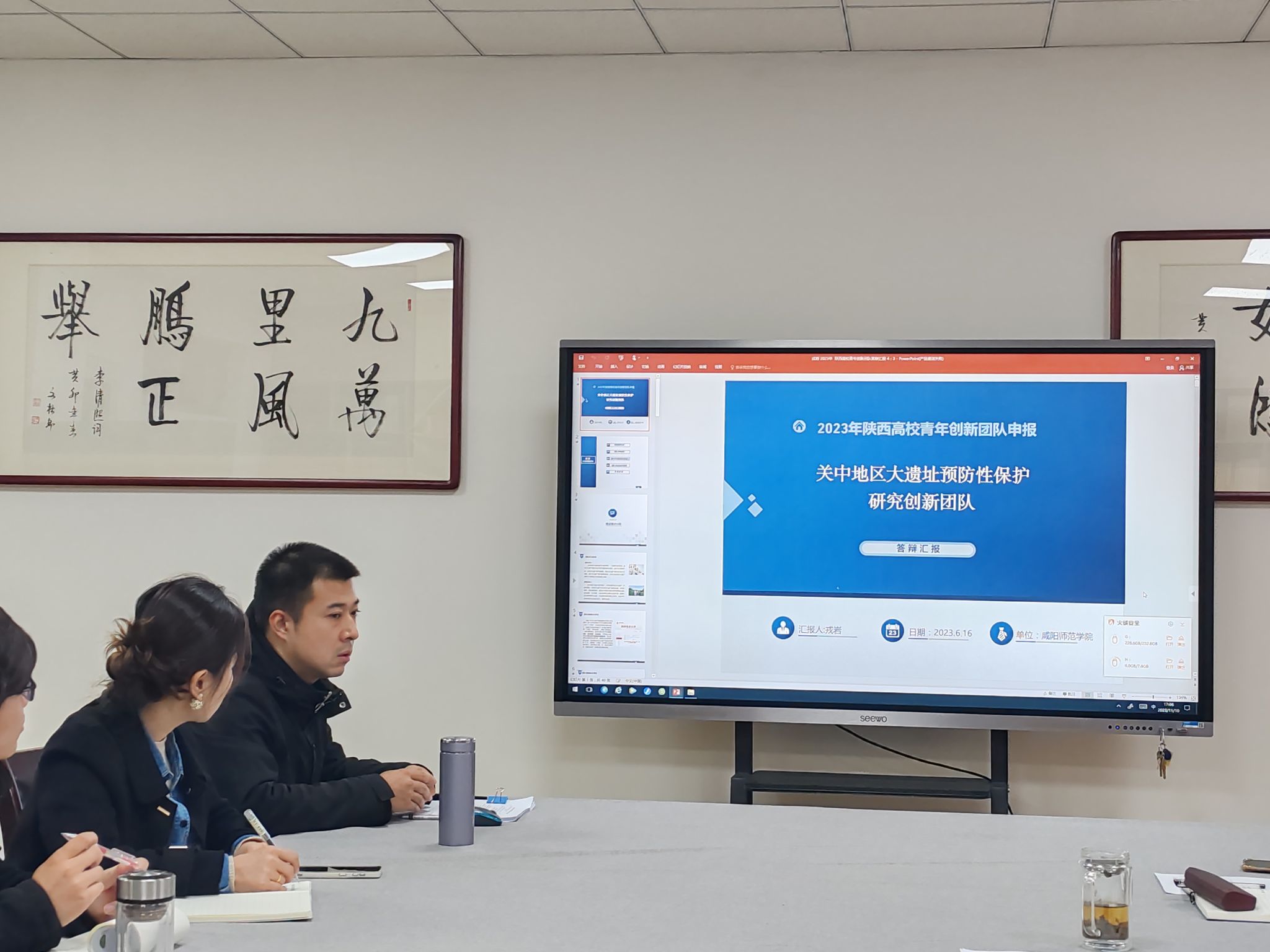 接着,2023年度教育部人文社科青年基金项目获批教师李云鹏分享了申报经验,包括研究问题的提出,撰写思路、技术规范和注意事项等。陕西省高校青年创新团队获批教师戎岩副教授分享了申报经验,包括团队组建、人才培养及成果产出等。