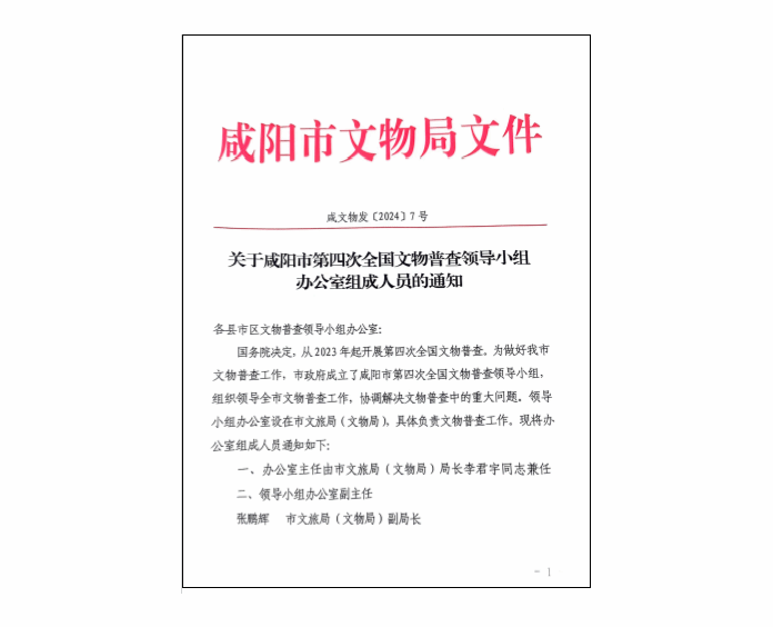 国务院决定,从2023年起开展全国第四次文物普查工作。为做好咸阳市文物普查工作,近日咸阳市政府成立了咸阳市第四次全国文物普查领导小组及文物普查队。我院肖健一教授带领师生组成第八小组,参与本次文物普查工作。这是beat365发挥学科优势和专业特长,积极参与文化遗产保护和利用工作,服务地方和社会,传承和弘扬中华优秀传统文化的实际行动。