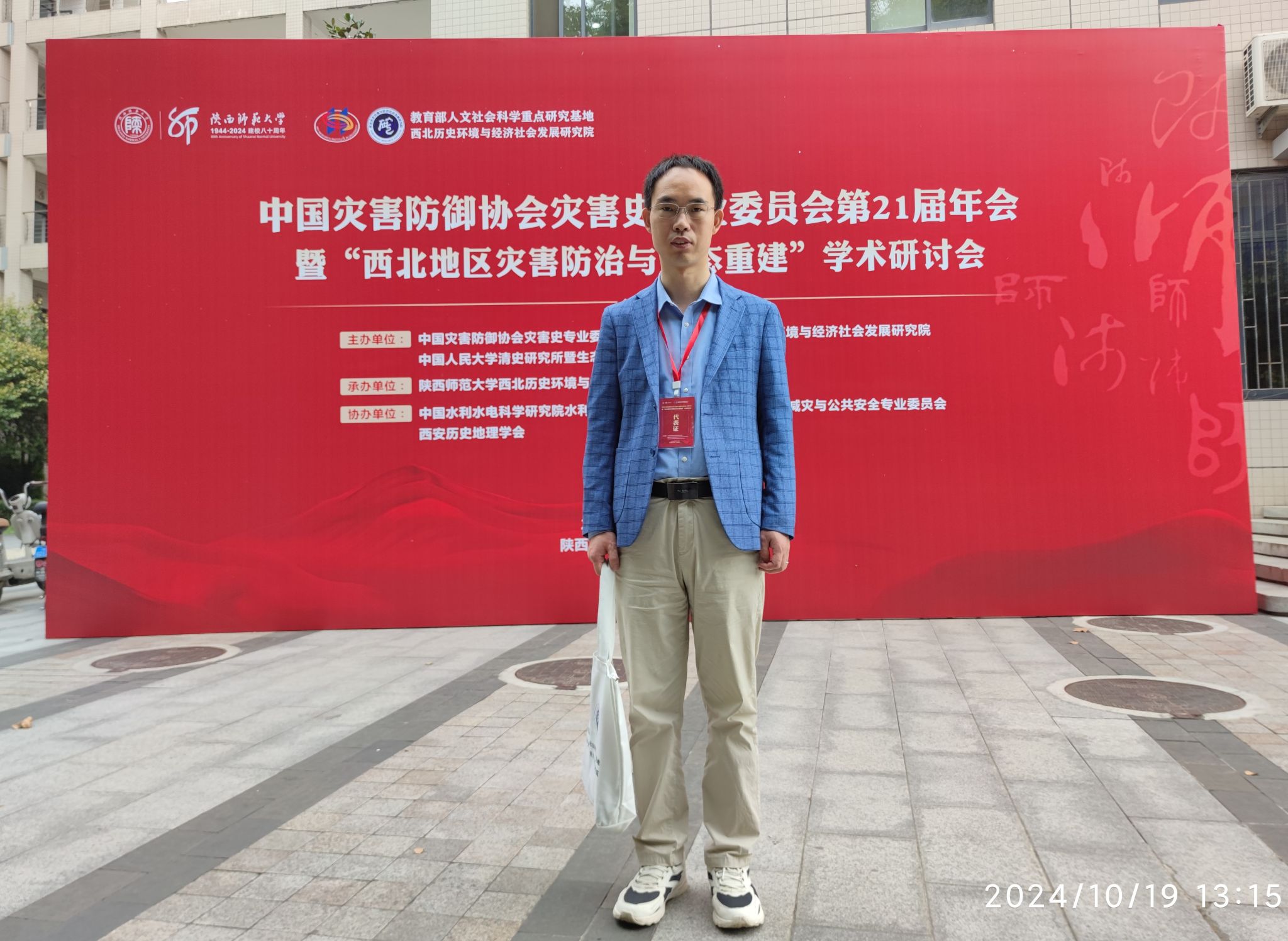 我院田大刚老师应邀参加了此次学术盛会,做了题为“明清时期关中城市水患及其应对措施”的报告,并与数位灾害史研究专家进行了深入交流。
