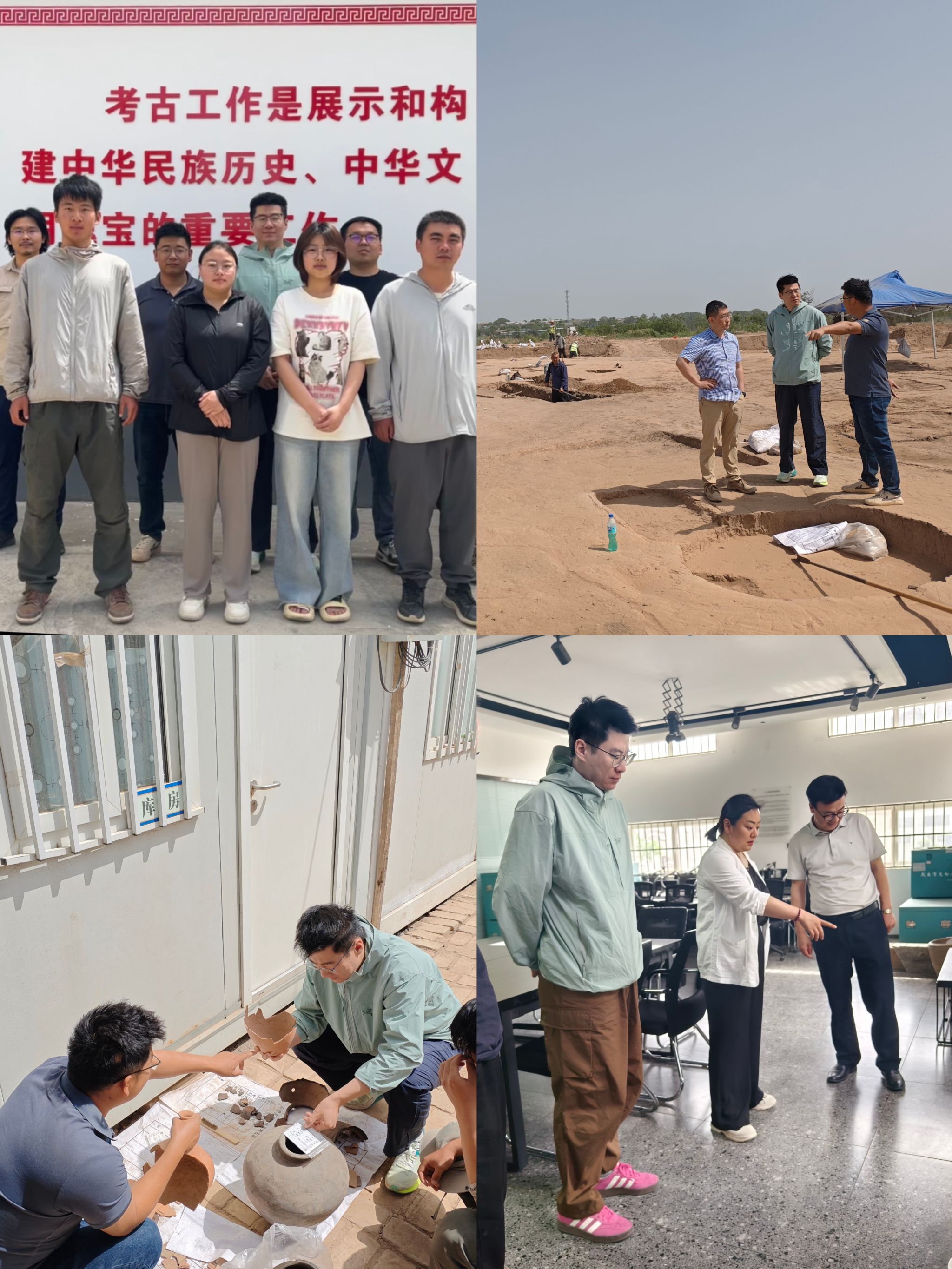 在咸阳市考古研究所,检查了实习生参与考古发掘、文物整理、资料归档等工作情况。文物考古研究所副所长李昆桦对实习生的专业能力和踏实作风给予高度评价,并介绍了学生在田野考古、文物修复等实践环节的表现。