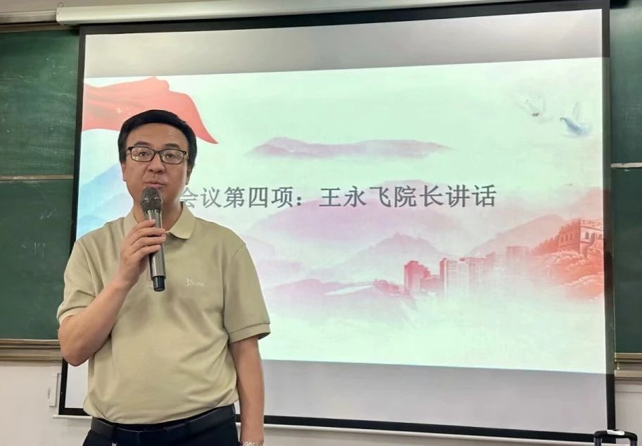 院长王永飞鼓励同学们要努力学习、踏实复习,诚信考试,并强调学院会对考试违纪与作弊行为严格处理。他分享了科学的复习方法和备考经验,鼓励同学们合理安排时间,制定详细的复习计划,认真梳理知识点,以扎实的知识储备迎接考试。