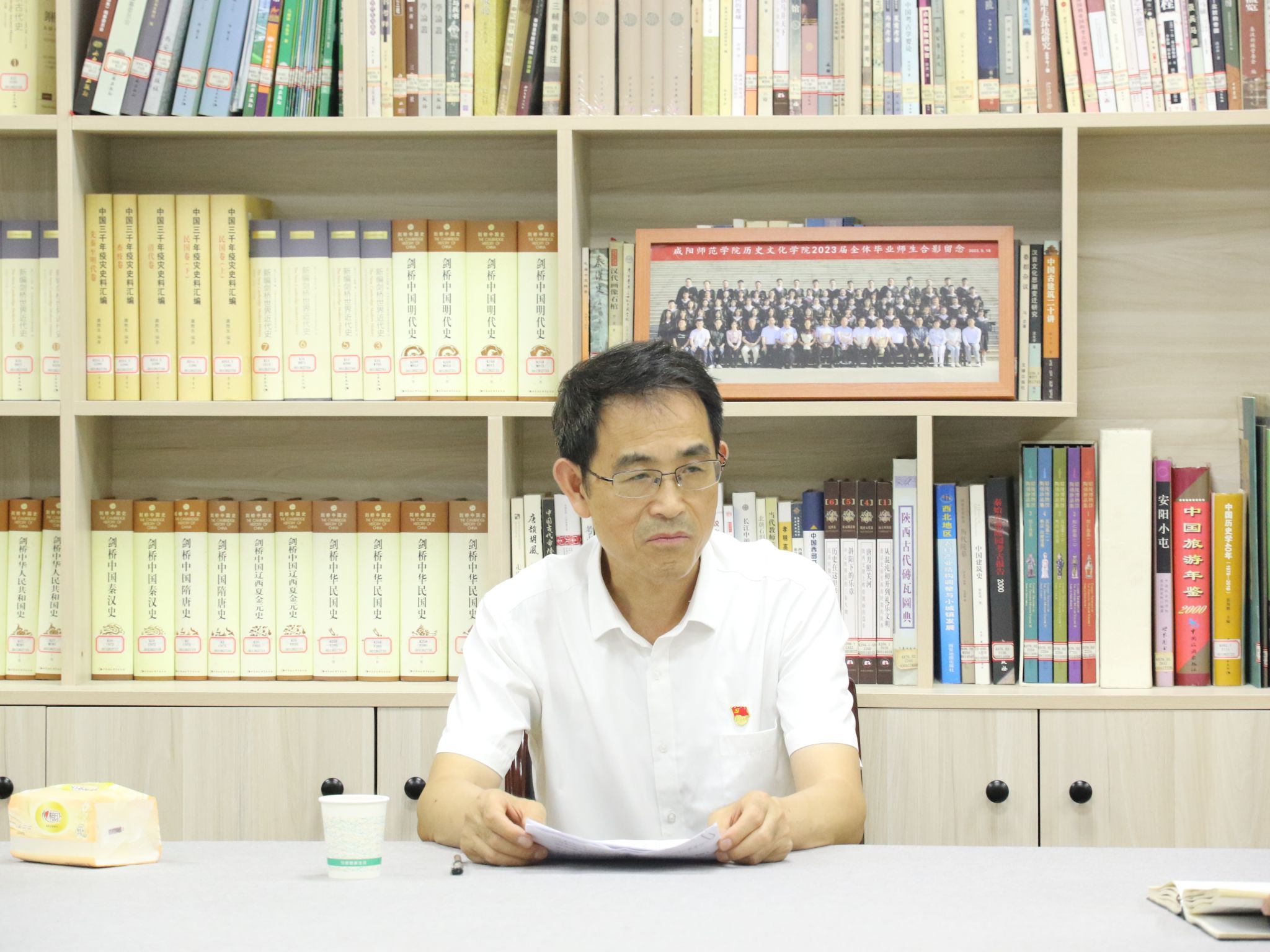 6月27日,副校长毛龙灿以《高标准高质量开展主题教育书写新时代高等教育新篇章》为题,为历史文化学院党员干部讲授了专题党课。