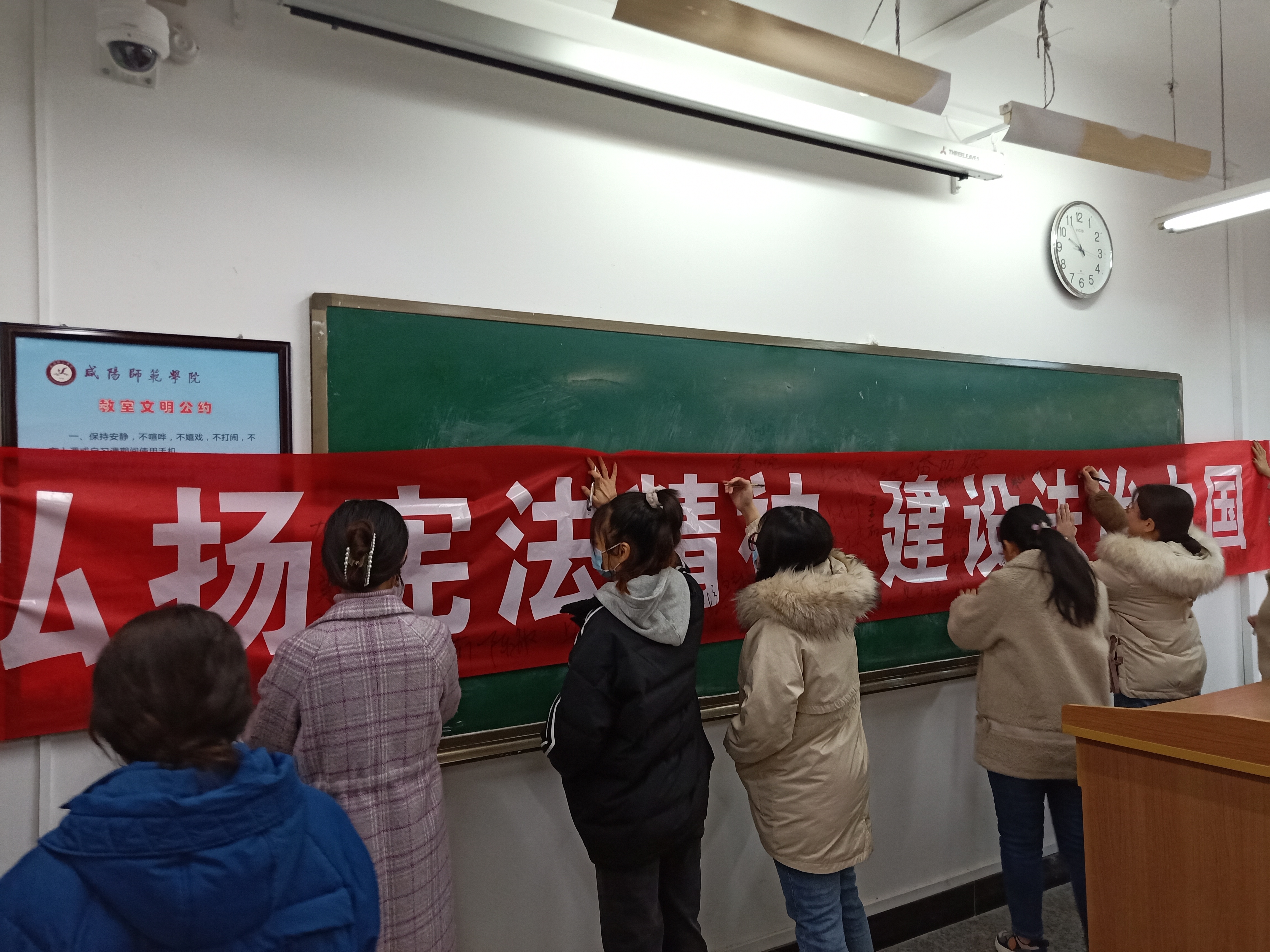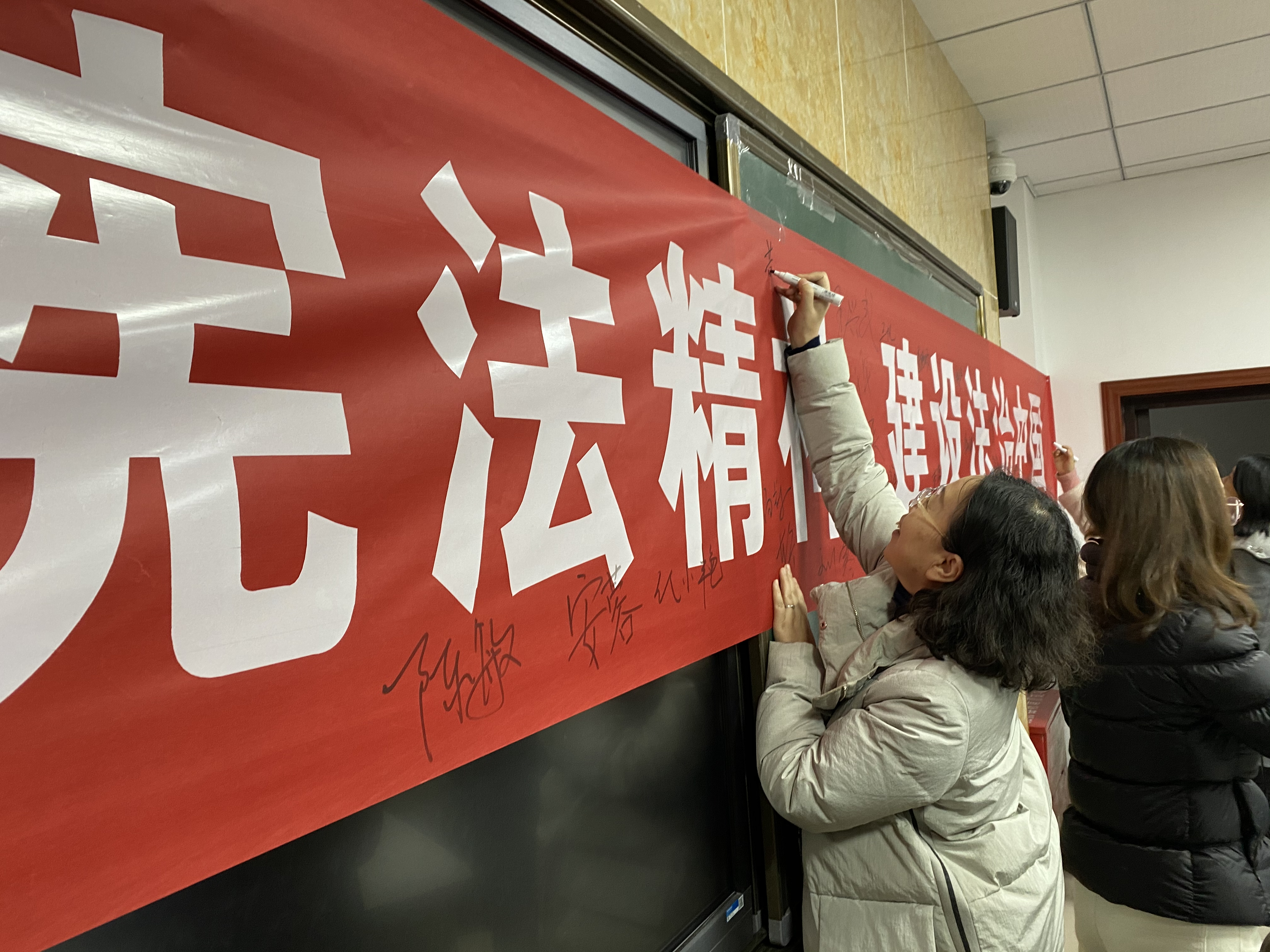 学院通过召开全体教职工集体学习会、主题班会、师生联合签名、微信公众号宪法知识推送等形式,开展宪法学习宣传教育。帮助师生清晰认识我国宪法发展历程、宪法重要意义、公民宪法权利义务等,增强师生的宪法意识,提升学习宪法、尊崇宪法的校园法治文化。