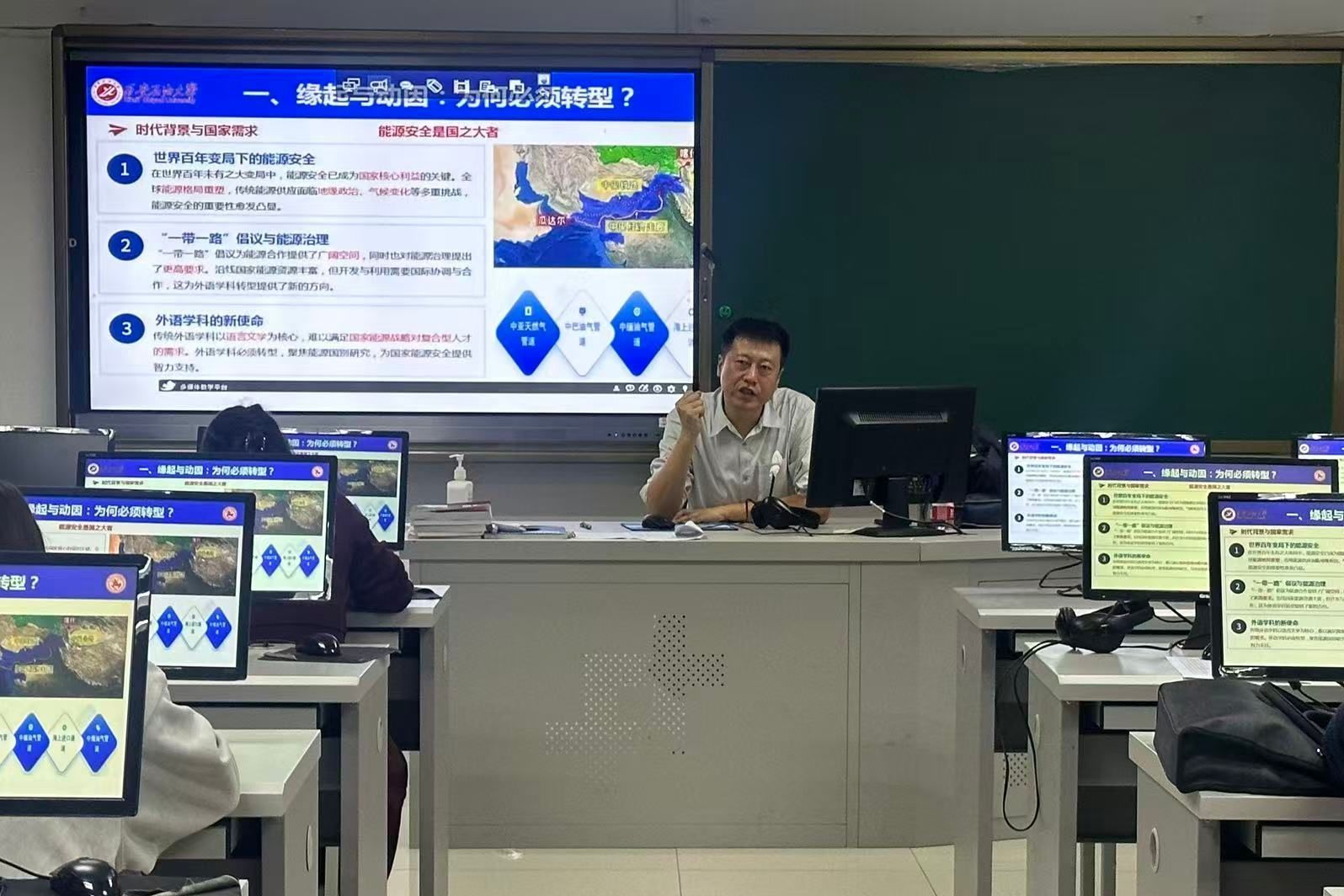 2025年10月16日下午,西安石油大学外国语学院副院长陈武教授应邀莅临beat365,在2号楼119教室作了题为《服务国家战略,彰显行业特色》的专题讲座。本次讲座由人事处、教师发展中心主办、外国语学院承办,是“2025年度教师发展系列讲座”中外国语学院“人工智能赋能外语教育”教师学科素养提质计划的第二场活动。讲座由外国语学院副院长赵崇俊主持,80余名师生代表。