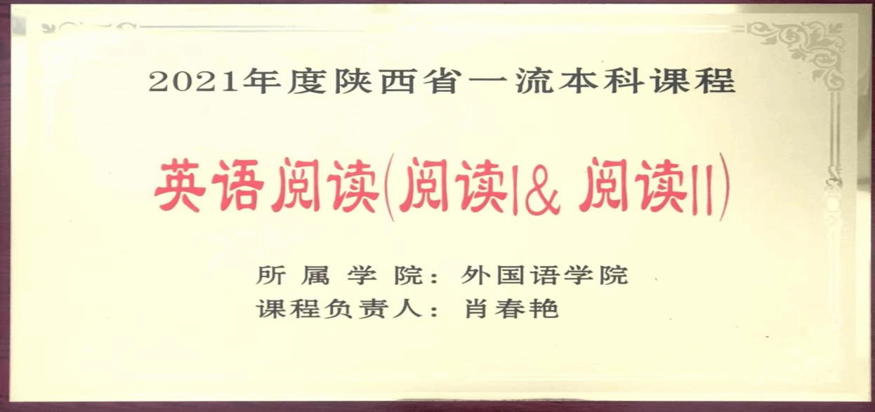 《英语阅读I&II》为陕西省线上线下混合式一流本科课程,课程负责人为肖春艳。