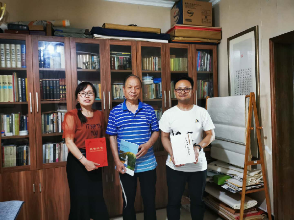 8、6月22日,母校校友总会办公室主任杨华老师与西安校友分会副会长倪朋飞一行看望84届校友刘思凯,并为校友颁发“咸师校友印章”和图书捐赠证书,感谢校友为母校图书馆捐赠个人著作《当代书法现象论》。