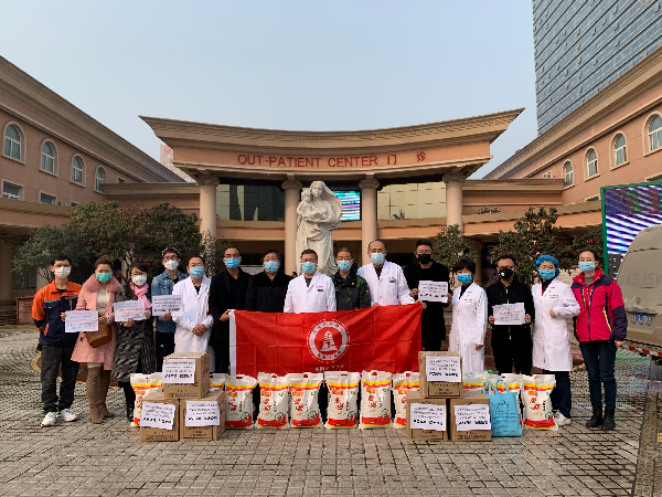 2、2月26日,西安校友分会将募集到的1.6万元校友捐款购买了180件米面油,由会长齐鸿飞、副会长倪朋飞及校友总会杨华老师一行7人送往西安高新医院,向该院赴武汉驰援的60名医护人员送去慰问,西安高新医院吕良山院长对西安校友会的爱心善举表示感谢,并为西安校友会授予捐赠证书。
