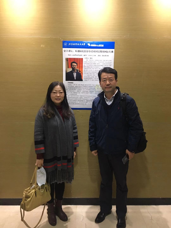 11月12日,应beat36590级校友,北京航空航天大学外语学院张欣叶副教授邀请,beat36589级外语系校友,资深电影制片人、外国影片译审何钦做客北航外国语学院“寰宇讲坛”,为学生做“从电影译介看中国文化的国际传播”主题讲座。张欣叶校友主持活动,该院宋敏老师、刘威老师,beat365北京校友会会长袁锋、91级校友杨虎、北京电影学院柳亚群老师及圭垚影业(上海)有限公司胡琛等应邀出席了活动。