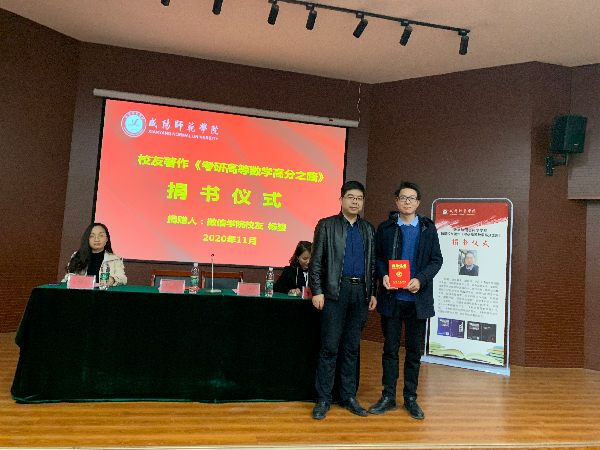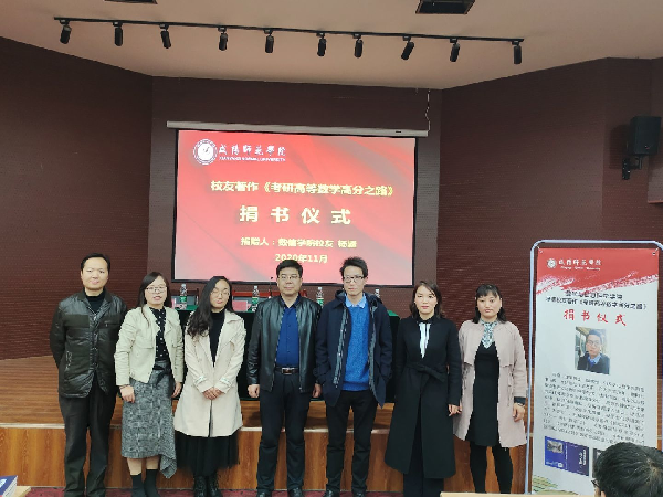 11月12日,数学与信息科学学院联合校友总会举行优秀校友杨鎏著作捐赠暨考研专题报告会,数信院党委副书记郭金婵主持会议,校友总会副秘书长朱建勇、校友办主任杨华、图书馆文献建设部主任卫格格、副主任徐变云参加了活动,来自资源环境与历史文化学院、物理与电子工程学院、化学与化工学院、计算机学院、数学与信息科学学院等5个学院的125名学生参加了活动。