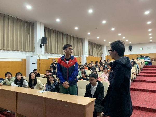报告会上,杨鎏校友从他的学习历程开始,带领同学们进入数学的世界,介绍了数学思想,教同学们在考研路上如何学好数学,并对考研时间做了规划。活动安排现场提问环节,同学们纷纷举手提问,提出自己在考研路上的疑惑、专业选择、复习困难等等,杨鎏校友一一耐心解答。杨鎏校友的求学经历,对数学研究的执着追求,严于律己拼搏奋进,对母校的热爱和情怀感染着在座的每一位同学,现场掌声不断,气氛热烈。