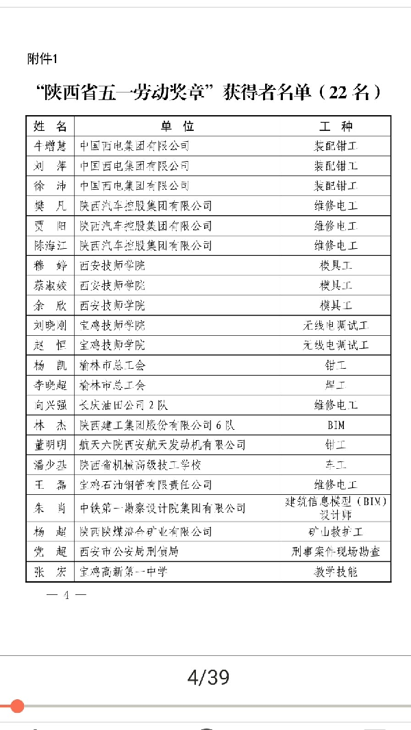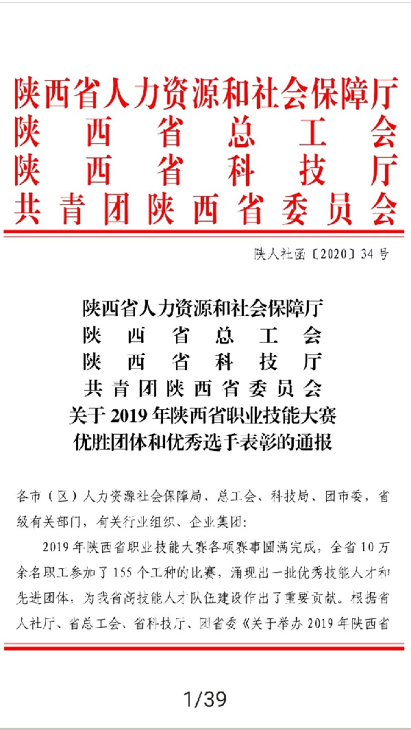 2019年陕西省职业技能大赛各项赛事圆满完成,全省10万多名职工参加了155个工种的比赛,涌现出一大批优秀技能人才和先进团体,为我省高技能人才队伍建设作出了重要贡献。根据省人社厅、省总工会、省科技厅、团省委《关于2019年陕西省职业技能大赛优胜团体和优秀选手的通报》,beat3652004届汉语言文学专业张宏校友荣获“陕西省五一劳动奖章”。