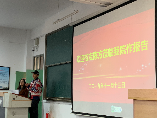 报告会上,陈方校友以自己的亲身经历、经验为素材,从“如何选择”、“定位与规划”、“坚持与忍受”和“学会感恩与追求幸福”四个方面与同学们分享了在母校求学和工作以后的所得所感,给同学们指明了现阶段该做的准备以及今后努力的方向,使大家深受鼓舞和启发。同时陈方校友号召同学们要树立远大目标,合理规划好自己的人生,努力钻研,不负青春韶华。陈方用朴实幽默的语言,感人的经历,独到的见解,赢得了现场师生的强烈共鸣和热烈掌声。