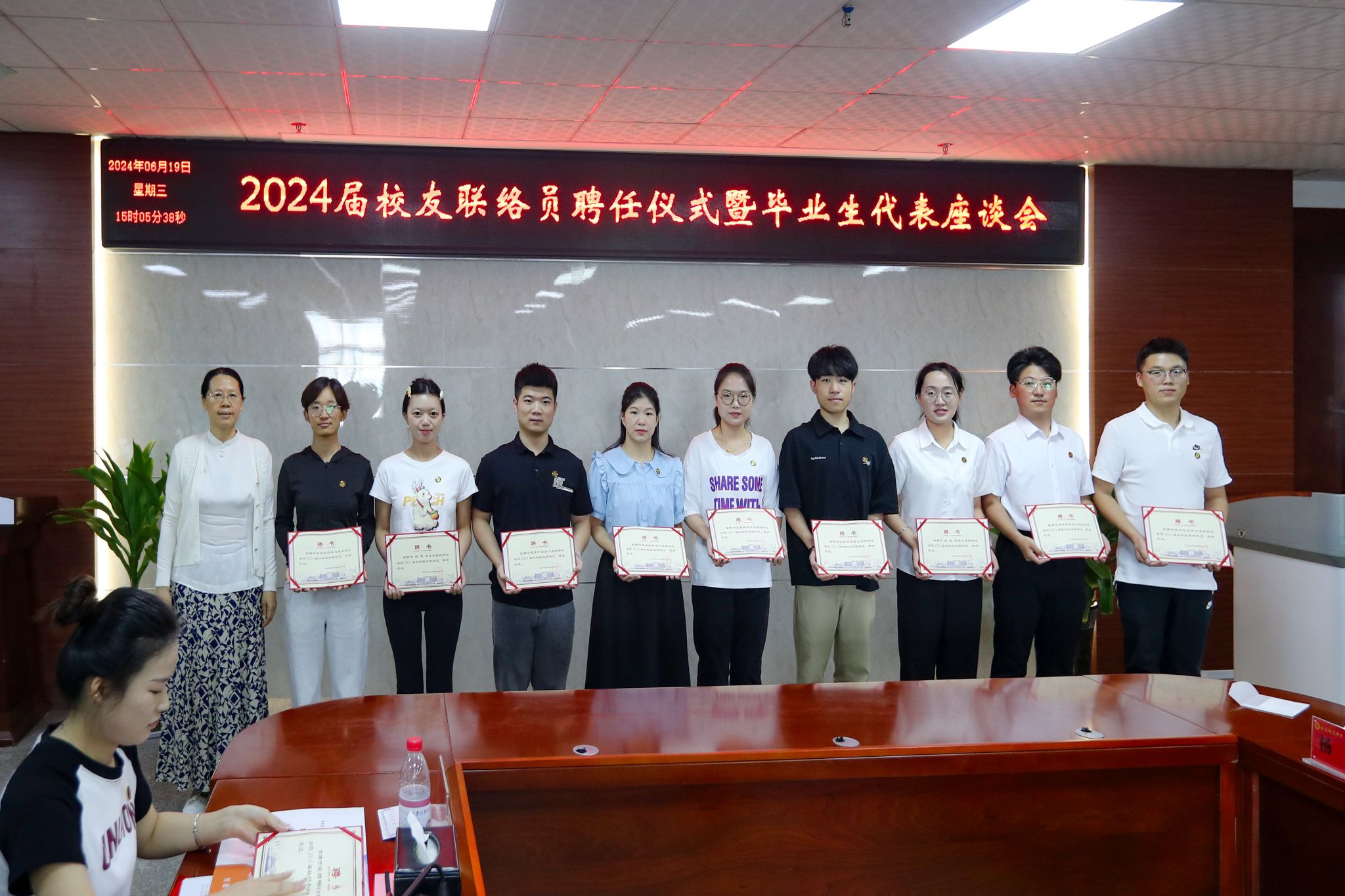 6月19日,beat365举行2024届校级校友联络员聘任仪式暨毕业生代表座谈会。学校党委副书记、校长王长顺,党委副书记周群英出席,校友总会秘书长王奥玲主持会议。