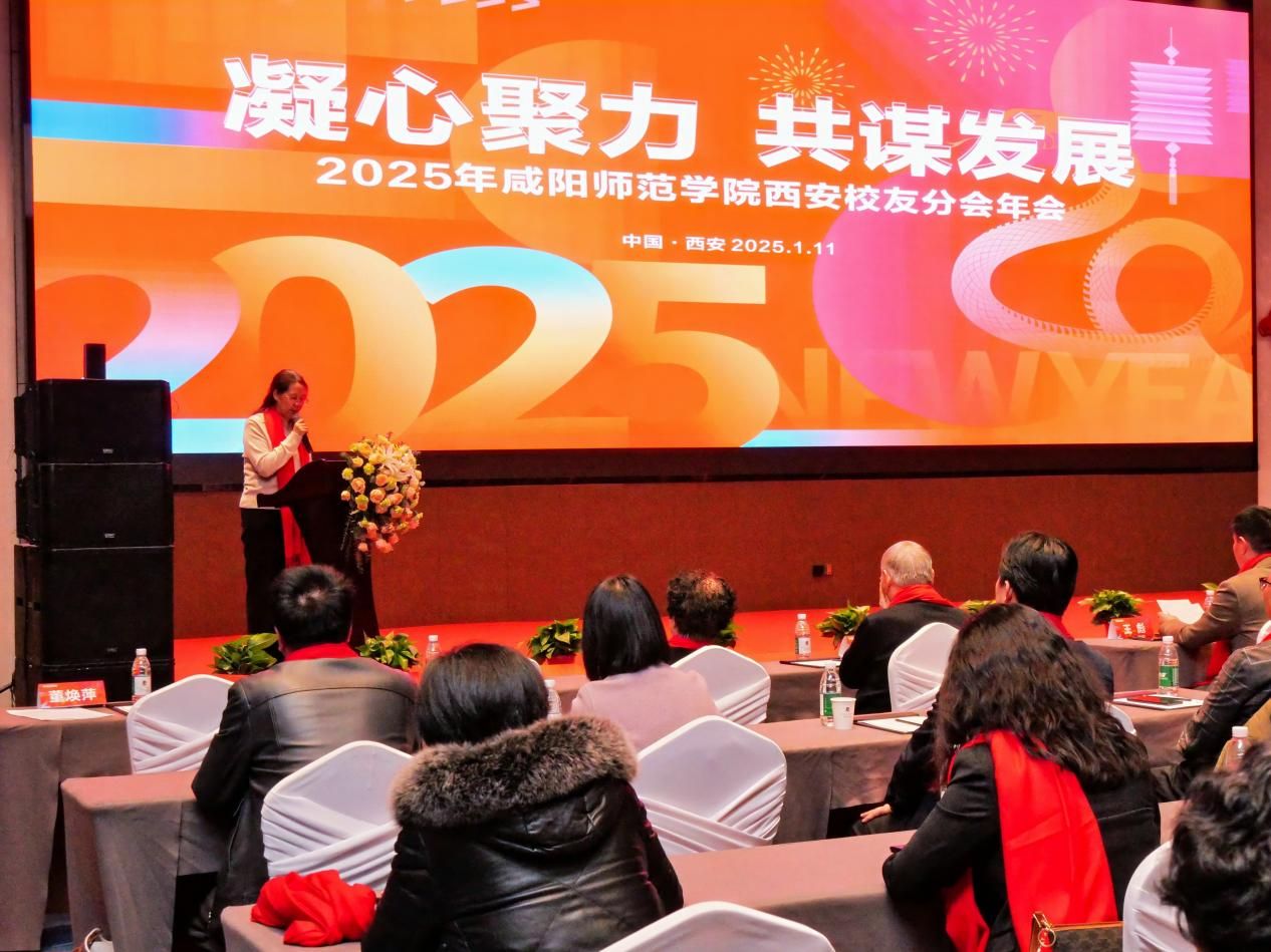 咸阳师院党委副书记周群英代表学校致辞,对各地校友会代表和西安校友们的到来表示热烈地欢迎,对西安校友会在密切联络校友、聚力校友资源服务母校发展等方面做出的贡献表示感谢;向校友们表达了新年的美好祝愿,并介绍了学校近几年发展成果与未来三步走战略规划。她强调,学校的发展离不开广大校友的支持和关注,校友是学校的宝贵财富,母校是校友的坚强后盾。期待西安校友会能够成为母校与校友之间密切联系的桥梁,今后持续加强情感联络,积极组织各类校友活动,凝聚校友力量,共同为学校和校友事业发展贡献力量。