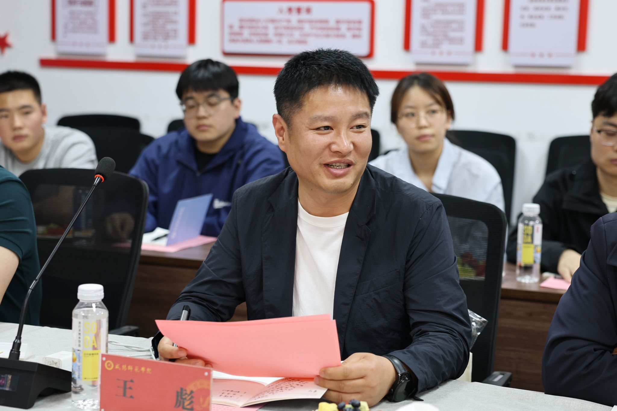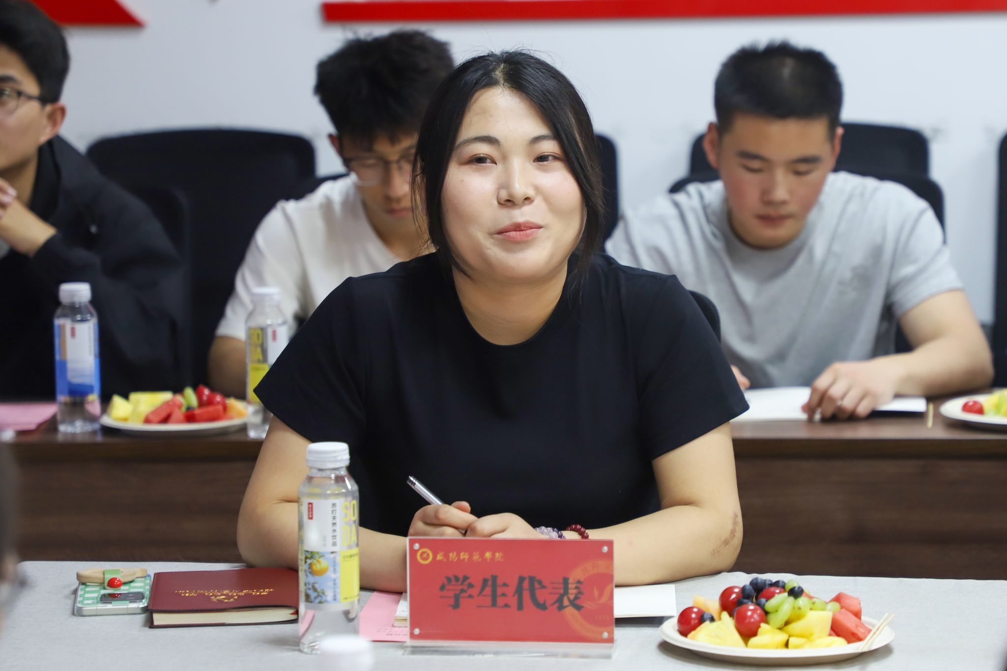 4月10日下午,beat365举办2025届毕业生代表座谈会。校党委副书记周群英出席会议。招生就业处副处长郭金婵主持会议。金域控股股份有限公司董事长、西安校友会会长王彪,中钲矿山建设集团董事长、机电校(农机校)校友会会长郭耀利,陕西润林文化产业有限公司总经理、咸阳校友会会长马可非等企业校友代表应邀参加活动。
