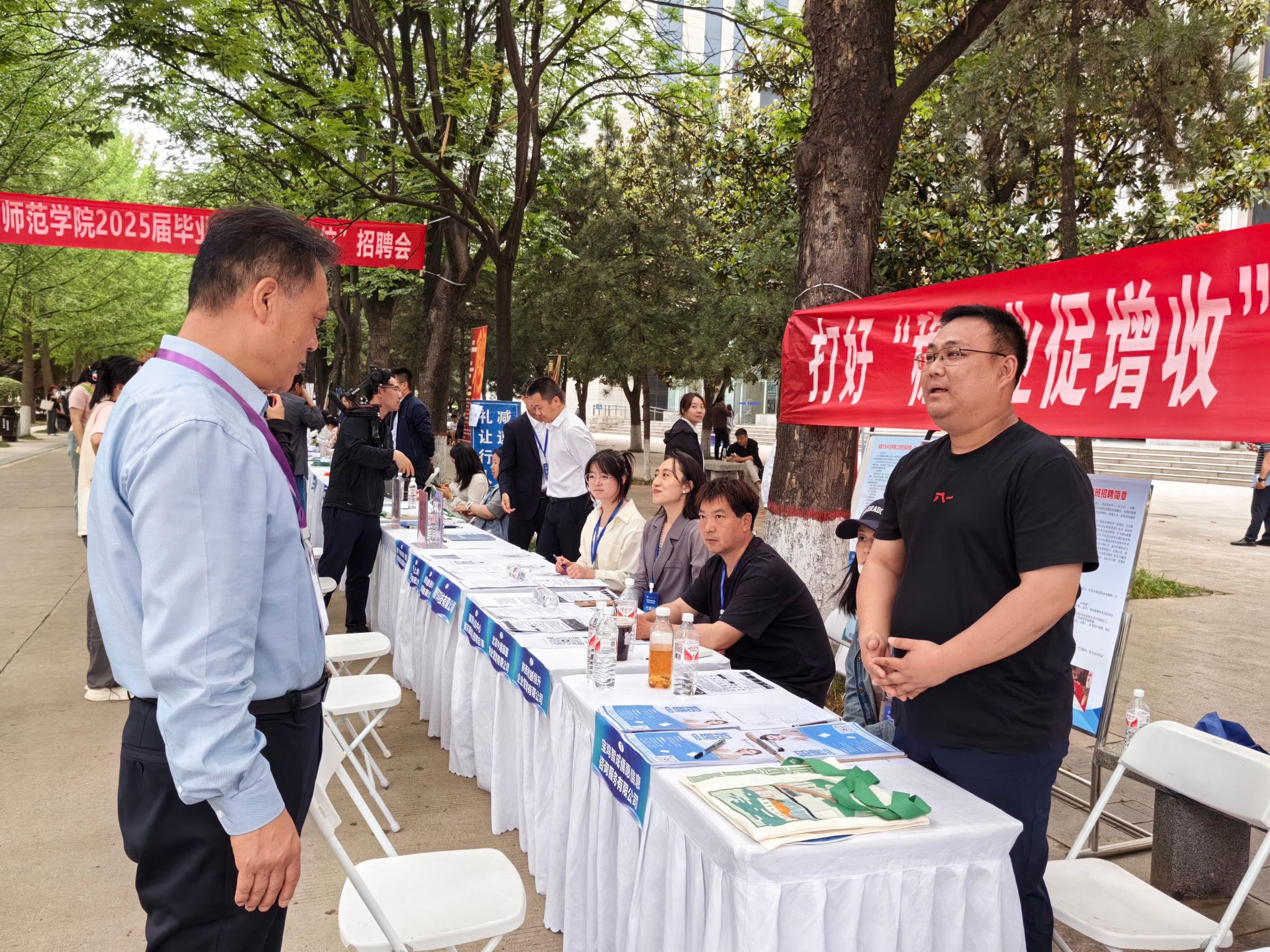 招聘会现场,学校党委书记王长顺深入了解各用人单位人才招聘需求,并与招聘单位代表深度交流;王长顺对校友企事业单位助力母校毕业生就业表示感谢。他强调,校友是母校的宝贵财富,是学校发展历程中不可或缺的力量源泉;校友企事业单位踊跃参与,助力学弟学妹就业,不仅为毕业生开辟了更为广阔的就业途径,更在校友情怀与交流合作层面,进一步拉近了母校与校友的距离。欢迎咸阳师院广大校友常回母校看看!