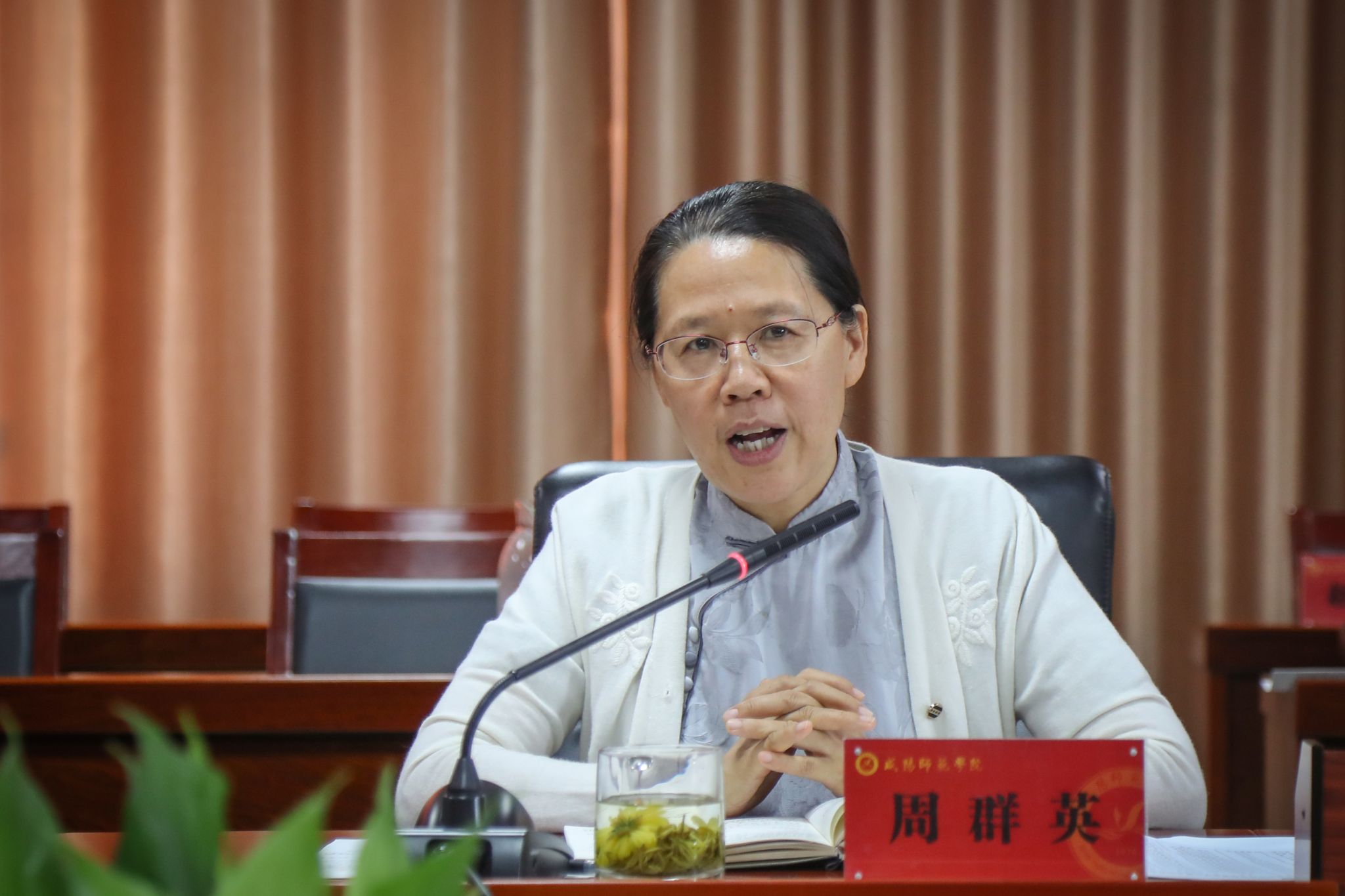 周群英感谢参会校友代表对学校发展建设的支持,对在校大学生考研学习、职业规划和就业创业的关心指导。她指出,今天的座谈会意义重大,校友们的榜样力量将激励学弟学妹为实现梦想而努力拼搏;校友们的职业规划、就业的经验和创业的磨砺对学弟学妹具有深刻的启发意义。她对与会学生代表提出四点希望和要求,一要做好大学学习计划和人生职业规划,要扬长避短,让长板更长,短板阻力减少;二是要夯实基础、锻炼为人处世能力,向内求索,向上生长。培养强大的内心世界,提高耐挫力,学会与人沟通。三要多实践多思考,在实践中涨见识、涨知识,建立自己丰富的知识、能力和经验储备;四要培养一项喜欢的运动并坚持锻炼,让自己保持健康的体魄,精气神昂扬,正能量充足。祝愿在校大学生快乐学习、生活,学有所获、学有所长,在大学遇见更好的自己。祝福校友们事业蒸蒸日上,家庭美满幸福,欢迎广大校友常回校看看。