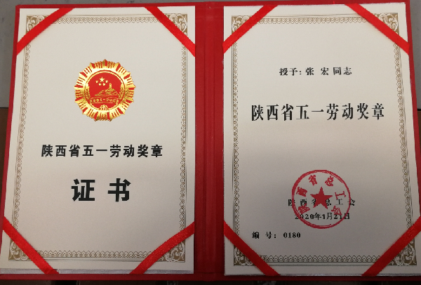 2020年1月被授予“陕西省五一劳动奖章”。
